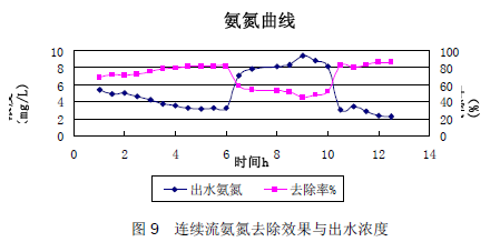 為了了解氨氮去除效果的穩(wěn)定性,在此基礎(chǔ)上,進(jìn)行了連續(xù)9天的監(jiān)測,結(jié)果見圖8。