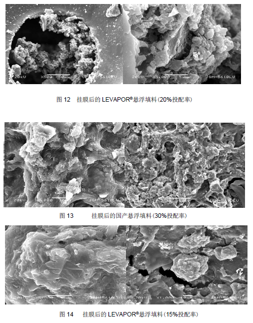 因此,判定在水溫較高時(shí),LEVAPOR®懸浮填料的掛膜時(shí)間為7天,而國產(chǎn)懸浮填料的掛膜時(shí)間為25 天。