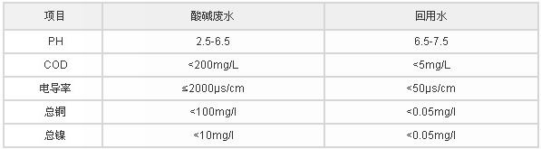 經(jīng)處理后出水達到PCB用水標準,具體見下表