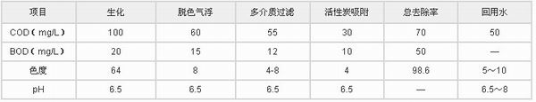 本工藝回用水,可回用至退漿、煮練、漂洗、絲光等前段工序,并與新鮮水混合用于后段工序,染布到一級品出廠標(biāo)準(zhǔn)。操作流程簡便,自動化運行,后段運行費用0.6元/ m3左右,適用于目前印染廢水已經(jīng)達(dá)標(biāo)排放的企業(yè)。加離子交換工藝后,可回用至所有工序。本工藝視具體印染廠的生產(chǎn)產(chǎn)品、染料、助劑、工藝及污水站處理工藝做相應(yīng)的調(diào)整。