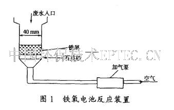 鐵屑法是利用金屬腐蝕原理, 形成原電池對廢水進行處理的工藝, 我國從20 世紀80年代就(就字為避免系統(tǒng)攔截所加,原文沒有)開始這一領域的研究〔2 〕, 已有不少文獻報道。特別是近年來, 進展較快, 在印染廢水、電鍍廢水、制藥廢水、石油化工廢水、含砷及含氰廢水治理方面相繼有研究報道, 有的已投入實際運行。一般的鐵屑法是將廢鑄鐵屑與惰性電極放在一起, 形成鐵- 惰性電極原電池, 通過鐵屑腐蝕發(fā)生的一系列化學反應來達到處理廢水的目的, 也叫內(nèi)電解法或者腐蝕電池法, 一般由活性炭〔3〕、煙道灰〔4〕、瓦斯灰〔5〕作為惰性電極。該方法存在處理速度慢, 活性炭、煙道灰和瓦斯灰難于與水分離, 鐵屑容易板結(jié)等不足, 阻礙了其工程規(guī)模應用的進度。為了解決上述鐵屑法的不足, 筆者首次嘗試提出了鐵- 氧電池法, 即將廢鑄鐵屑放入盛有抗生素廢水的反應器中, 從反應器下端用空氣泵鼓入空氣, 其中的氧氣與鐵屑形成了Fe - O 腐蝕電池,從而加速鐵的腐蝕速度, 以求在常規(guī)條件下滿足抗生素廢水 處理的要求。