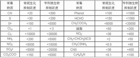 有毒物質(zhì)對(duì)H.S.B專利微生物的抑制濃度