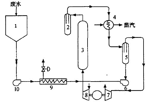 其工藝過程為:廢水通過貯存罐由高壓泵打入熱交換器,與反應(yīng)后的高溫氧化液體換熱,使溫度上升到接近于反應(yīng)溫度后進(jìn)入反應(yīng)器。反應(yīng)所需的氧由壓縮機(jī)打入反應(yīng)器。在反應(yīng)器內(nèi),廢水中的有機(jī)物與氧發(fā)生放熱反應(yīng)。在較高溫度下將廢水中的有機(jī)物氧化成二氧化碳和水,或低級(jí)有機(jī)酸等中間產(chǎn)物。反應(yīng)后氣液混合物經(jīng)分離器分離,液相經(jīng)熱交換器預(yù)熱進(jìn)料,回收熱能。高溫高壓的尾氣首先通過再沸器(如廢熱鍋爐)產(chǎn)生蒸汽或經(jīng)熱交換器預(yù)熱鍋爐進(jìn)水。其冷凝水由第二分離器分離后通過循環(huán)泵再打入反應(yīng)器,分離后的高壓尾氣送入透平機(jī)產(chǎn)生機(jī)械能或電能。因此,這一典型的工業(yè)化催化濕式氧化系統(tǒng)不但處理了廢水,而且對(duì)能量逐級(jí)利用,減少了有效能量的損失,維持并補(bǔ)充催化濕式氧化系統(tǒng)本身所需的能量。