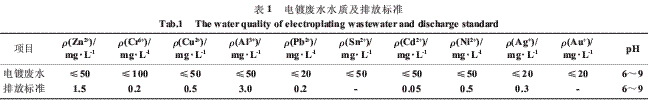 該公司表面處理車(chē)間廢水水量比較穩(wěn)定為25m·3h-1,其中電鍍廢水為10 m·3h-1,酸洗磷化廢水為15 m·3h-1。其設(shè)計(jì)進(jìn)水水質(zhì)和排放標(biāo)準(zhǔn)分別見(jiàn)表1和表2。