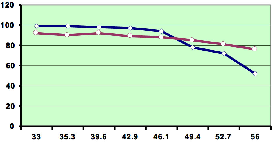 相對(duì)于活性污泥中的微生物固定在懸浮填料中的微生物對(duì)有毒抑制物質(zhì)以及酸堿度和溫度的變化的耐受性更強(qiáng),它們的存活時(shí)間也更長(zhǎng)。通過(guò)對(duì)比試驗(yàn)可以很清楚地看到當(dāng)使用 LEVAPOR ® 懸浮填料時(shí)抑制劑對(duì)硝化的負(fù)面影響將大大降低。從下圖可以看出,在 COD 為 1600mg/l , 鹽度為20-25 g/L 并且總氮負(fù)荷 Lv 為 0 . 25gN/Lxd 的相同條件下,使用 LEVAPOR ®懸浮填料其硝化率達(dá)到 94.9% ,而使用活性污泥法硝化率只能達(dá)到 28% 。