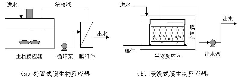 根據(jù)膜組件與生物反應器的相對位置,膜生物反應器可分為外置式(Sidestream Membrane Bioreactor)和浸沒式(Immersed or Submerged Membrane Bioreactor)兩種。