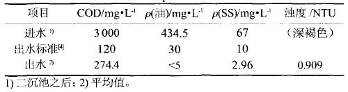 用磁分離技術(shù)對(duì)孤三聯(lián)合站污水進(jìn)行綜合處理試驗(yàn),具有較好的效果,處理后油、懸浮物含量和濁度已經(jīng)很低,見(jiàn)表2。