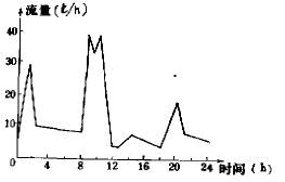 該企業(yè)印染廢水主要來源于染整和條復(fù)工序。所用染料有:媒介染料,分散染料中性染料及洗凈劑、元明粉、醋酸、硫酸等助劑。廢水水質(zhì)隨產(chǎn)品染色種類不同而有較大變化,水質(zhì)一般為,PH4~9,CODCr200~400mg/l,BOD5 150~300mg/1,Cr6+ 0.100~0.160mg/l,色度100~200倍。印染廢水排放量日變化曲線如圖1。