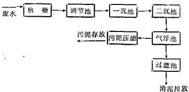本地區(qū)某毛紡企業(yè), 日排放印染廢水400余噸, 為了在發(fā)展生產(chǎn)的同時(shí)消除污染,該企業(yè)投資60萬(wàn)元, 建成了一套日處理能力為1000噸廢水的處理工商采用氣浮法處理印染廢水,于1991年10月正式投入運(yùn)行。處理后水質(zhì)經(jīng)監(jiān)測(cè)分析達(dá)到GB8978-88 污求綜合排放標(biāo)準(zhǔn)》。