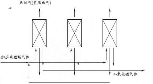 填埋場氣體的預(yù)處理工藝可以提高甲烷氣體的比例,比如用碳分子篩進(jìn)行的選擇壓力吸附工藝以去除二氧化碳,下圖給出了該工藝的流程圖。