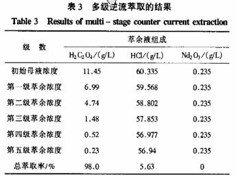 稀土元素自1794年發(fā)現(xiàn)以來,由于在磁、光、電等諸方面表現(xiàn)獨(dú)特的性質(zhì),各國都對此高度重視,并且投入了大量的人力、物力、財(cái)力進(jìn)行稀土元素的開發(fā)和利用。我國的稀土資源優(yōu)勢明顯,為稀土工業(yè)的發(fā)展提供了十分有利的條件。20世紀(jì)80年代中期以來,我國稀土工業(yè)發(fā)展十分迅速,并取得了巨大的成就。但稀土冶煉屬于濕法冶煉,廢水量比較大,并且稀土冶煉廢水具有污染嚴(yán)重和治理困難等特點(diǎn),稀土冶煉將會帶來較大的環(huán)境問題。稀土草沉淀母液即稀土草沉廢水產(chǎn)生于氯化稀土向氧化稀土轉(zhuǎn)化的過程中。目前國內(nèi)處理稀土冶煉廢水主要采用石灰中和法,此法雖然操作簡單、費(fèi)用低廉,但勞動強(qiáng)度大、作業(yè)環(huán)境惡劣,渣量大并且難處理,水中的酸沒有得到回收,浪費(fèi)了資源。為了回收稀土草沉廢母液中草酸與鹽酸,一種途徑就是把這兩種酸分離再循環(huán)到生產(chǎn)中去,從而實(shí)現(xiàn)稀土草沉廢母液的零排放。本文采用TOB-煤油萃取體系對稀土草沉廢母液進(jìn)行了萃取分離實(shí)驗(yàn),探討了各種因素對萃取分離過程的影響,分析了TOB萃取草酸的主要機(jī)理,可為該工藝治理草酸廢水的實(shí)際應(yīng)用提供理論依據(jù)。