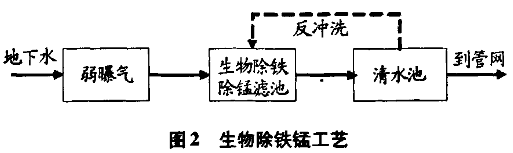 (4)生物除錳法 人們很早就認(rèn)識到微生物對鐵錳的氧化作用,但是把微生物引入到地下水除錳領(lǐng)域的歷史并不長。生物法除鐵、除錳作為一種新的工藝也開始在一些國家研究推廣,如法國、德國、保加利亞等國家都有應(yīng)用,均取得良好效果。