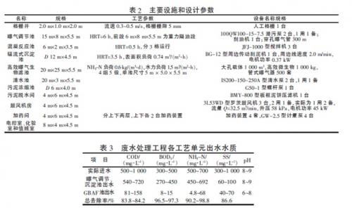 廢水處理系統(tǒng)主要包括調(diào)節(jié)、生化處理兩部分。由于該廢水為低C/N 廢水,GBAF 在去除氨氮的同時對廢水中TN 亦有一定的去除效果, 考慮到節(jié)約投資和運行費用,本工程中沒有單獨設置反硝化處理工藝。