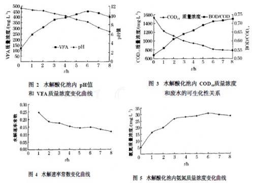 綜合以上因素,考慮到實際工程的經(jīng)濟因素和水解效果,本試驗確定水解酸化池停留時間6 h為最佳停留時間.