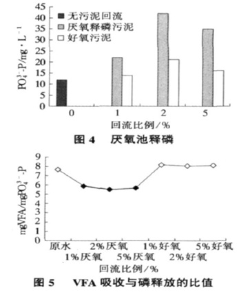 2)回流污泥使出水中磷負荷增加, 有利于聚磷菌優(yōu)勢生長, 提高VFA 的利用率。