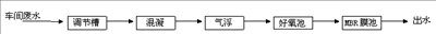由于該廢水水量小,水質多變,先在調節(jié)槽進行調節(jié)水質,再接比較耐沖擊負荷能力和較高處理效率的混凝-氣浮法;炷-氣浮法原理是:通過對污水精心加壓,加藥,混合(氣、藥、水),釋放,使之產(chǎn)生浮選,并將絮凝體從水體中快速有效地分離出來,達到凈水的目的。設計混凝氣浮除去切削液中的乳化油。氣浮后設計好氧池及MBR膜池。膜生物反應器(MBR)工藝是膜分離技術與生物技術有機結合的新型廢水處理技術,利用膜分離設備將生化反應池中的活性污泥和大分子有機物質截留住,省掉二沉池。活性污泥濃度因此大大提高,水力停留時間(HRT)和污泥停留時間(SRT)可以分別控制,難降解的物質在反應器中不斷反應、降解,對COD,BOD的去除效率高。
