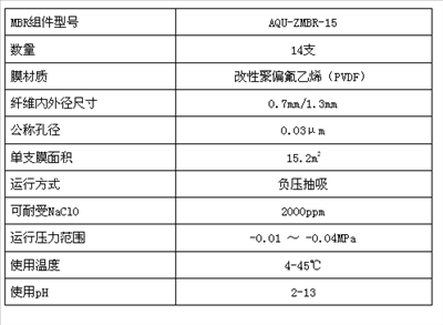 該項目總計14支AQU-ZMBR-15,4支柱式膜組裝成1套MBR-4,2支柱式膜組裝成1套MBR-2,總計3套MBR-4設備和1套MBR-2設備,組裝后的設備具有以下特點:
