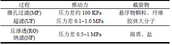 表1 膜分離過程及分離特點