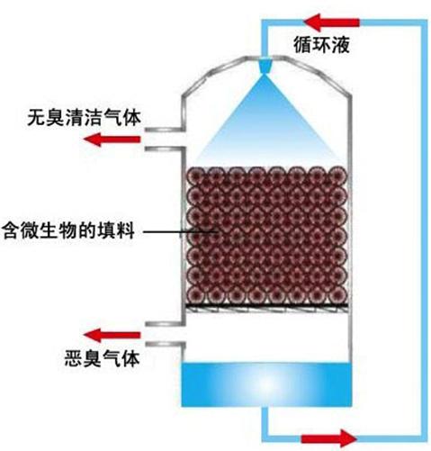 采用循環(huán)回流淋灑的方式。塔內(nèi)附著在格柵上的微生物十分豐富,在淋水紊動(dòng)濺潑的狀態(tài)下廢水中的溶解氧含量大為提高。