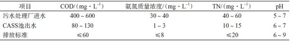 表1 廢水水質(zhì)及排放標(biāo)準(zhǔn)
