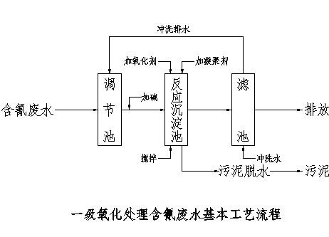采用兩級氧化處理含氰污水時可以采用下圖所示基本工藝流程: