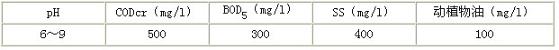 該企業(yè)污水處理后排入市政污水處理廠,必須達(dá)到污水排入城市下水道的水質(zhì)標(biāo)準(zhǔn),即GB8978-1996《污水綜合排放標(biāo)準(zhǔn)》表4中三級(jí)標(biāo)準(zhǔn),主要污染物最高允許排放濃度如下:
