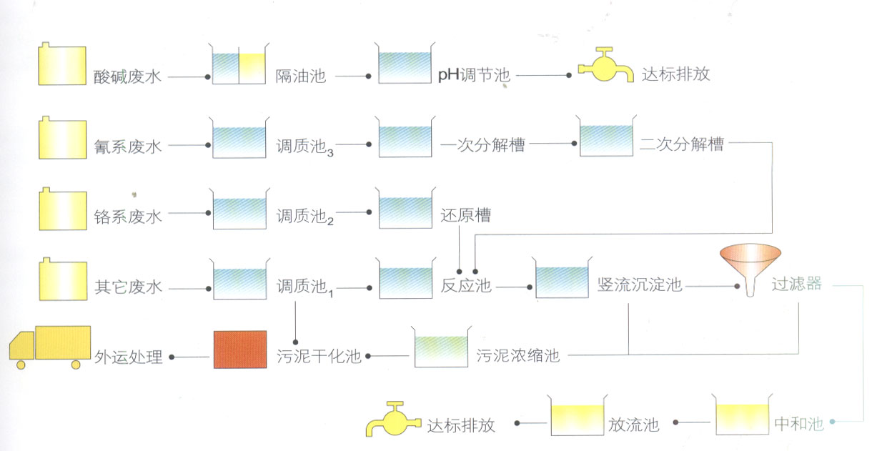 化學(xué)沉淀法來處理綜合電鍍廢水。
