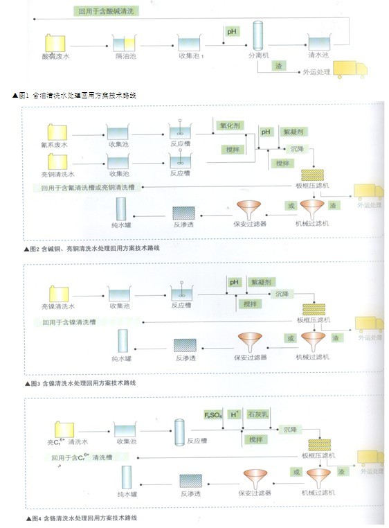 (3)含鎳清洗水:單獨收集.控制pH值處理回用或除鹽進行回用。