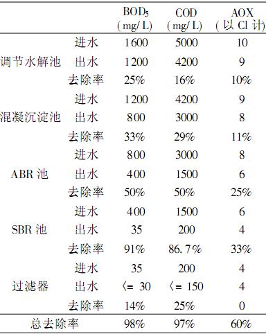 綜上分析,本項(xiàng)目采用水解酸化+混凝沉淀+離子氧化+ABR+SBR的組合處理工藝,其對(duì)環(huán)氧氯丙烷,二氯甲烷,AOX等有較好的去除效率,總的去除效率達(dá)60%以上。