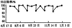 從圖4可以看出.sS的去除率大都穩(wěn)定在95%左右.這表明原水經(jīng)過混凝沉淀、過濾等處理工藝后,水中的懸浮物含量得到明顯的去除。但因鋼鐵企業(yè)每月會安排一次計劃檢修,勢必造成污水水質(zhì)惡化。給處理工藝還是帶來一定的沖擊影響,這是圖4中每月SS處理率較低的原因(最低時僅為85%左右)。