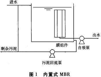 內(nèi)置式MBR是將膜組件置入反應(yīng)器內(nèi),在泵的負壓抽吸作用下濾出液透過膜組件,為減少膜面污染,延長運行周期,一般采用間歇出水方式運行。外置式MBR是指膜組件與生物反應(yīng)器分開設(shè)置,反應(yīng)器內(nèi)混合液通過泵進入膜組件,在壓力作用下混合液濾出液透過膜組件,濃縮液則返回反應(yīng)器。