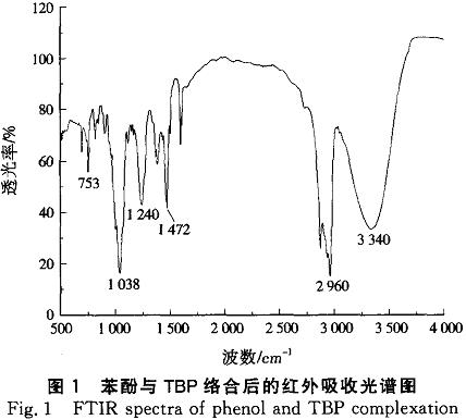 圖1是苯酚與TBP絡(luò)合后的紅外吸收光譜圖。