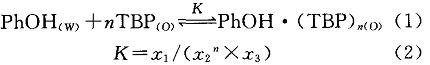 苯酚和TBP由于存在氫鍵締合,在水和TBP中存在以下平衡: