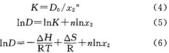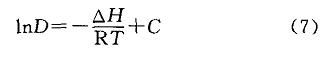 式中:△H為焓變,J/tool;R為理想氣體常數(shù),J/(mol•K),R一8314J/(tool•K);T為溫度,K;AS為熵變,J/mol。一般認(rèn)為,熵變不隨溫度變化,則式(6)可簡化為: