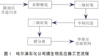 哈爾濱石化公司膜生物反應(yīng)器工藝流程見圖1。