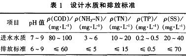 廢水深度處理工程總處理能力為10000m/d,處理后出水水質(zhì)執(zhí)行《太湖地區(qū)城鎮(zhèn)污水處理廠(chǎng)及重點(diǎn)工業(yè)行業(yè)主要水污染物排放限值))DB32/T1072—2007的排放標(biāo)準(zhǔn)。工程的設(shè)計(jì)進(jìn)水水質(zhì)和排放標(biāo)準(zhǔn)見(jiàn)表1。