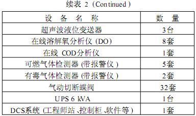 廢水處理廠設(shè)置了一套DCS系統(tǒng),對工藝運(yùn)行過程進(jìn)行集中監(jiān)控與管理。操作室布置系統(tǒng)操作員站2個(gè)(其中1個(gè)兼作工程師站),機(jī)柜室布置控制柜、端子柜等。主要儀表設(shè)備見表2。