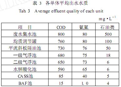 ①該煉油廢水處理廠在物化段采用隔油/兩級氣浮工藝,有效去除了油污染,保證了進(jìn)入生化段的油含量<10mg/L;生化段采用水解酸化/CASS/BAF工藝,具有廢水處理彈性大、運(yùn)行穩(wěn)定、自動化程度高、處理效果好等特點(diǎn)。