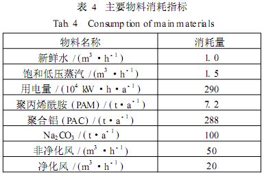 運(yùn)行過程中的主要物料消耗情況見表4。