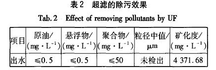 超濾幾乎可去除所有的原油和懸浮物及絕大部分的聚合物(見表2),其出水水質滿足電滲析的進水水質要求。