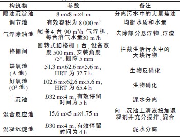 各構(gòu)筑物的設(shè)計參數(shù)及主要功能見表2。