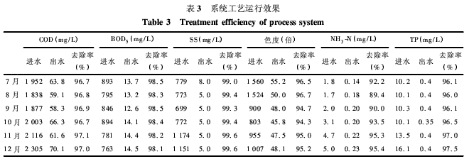 COD:重鉻酸鉀法測定;BOD5:稀釋與接種法測定;SS:重量法測定;pH值:pH S-2型酸度計(jì)測定;色度:稀釋倍數(shù)法測定;NH3-N:納氏試劑分光光度法測定;TP:過硫酸鉀消解-鉬銻抗壞血酸分光光度法。