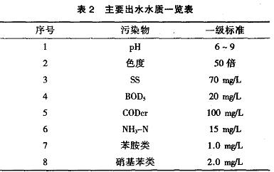 該工程廢水經(jīng)集中處理后的尾水將排入長(zhǎng)江,排放標(biāo)準(zhǔn)按照《污水綜合排放標(biāo)準(zhǔn)》(GB8978—1996)中的一級(jí)標(biāo)準(zhǔn),主要污染物指標(biāo)如表2所列。