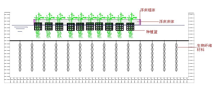 (4)生物碳纖維填料+聚苯丙烯浮島。