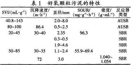 在好氧條件下,培養(yǎng)顆粒污泥的條件較為苛刻,并且在不同操作條件和培養(yǎng)目的下培育出的好氧顆粒污泥在顆粒大小、粒徑分布、顏色、功能上也都存在著差異。好氧顆粒污泥的特性:表面光滑、較高密度和高強(qiáng)度、高生物量、耐沖擊負(fù)荷、抗有毒物質(zhì)。好氧顆粒污泥外觀一般為橙黃色或淺黃色,周洵平等總結(jié)了不同反應(yīng)器在各自條件下培養(yǎng)的好氧顆粒污泥的特性,見(jiàn)表1。