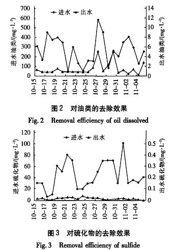 石油類為生物難降解物質(zhì),它可造成生物呼吸困難、污泥生長緩慢,從而造成對BOD,、COD的去除率下降,因而一級處理效果的好壞,直接影響后續(xù)生化處理能否正常運行,也影響了整個污水處理系統(tǒng)運行的穩(wěn)定性。設(shè)計采用隔油及氣浮工藝去除大量的油脂、懸浮物及部分COD,同時減輕硫化物對生物的毒害作用,并在均質(zhì)罐中進一步完成均質(zhì)和除硫工作,從而保證進入生物處理區(qū)的污水能夠滿足生化處理的要求。