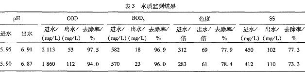 貴陽(yáng)三源藥業(yè)有限公司污水處理工程經(jīng)過3個(gè)多月的調(diào)試運(yùn)行后,各項(xiàng)出水水質(zhì)指標(biāo)均達(dá)到排放標(biāo)準(zhǔn),于2011年12月申請(qǐng)并通過了當(dāng)?shù)丨h(huán)保部門的監(jiān)測(cè)驗(yàn)收。環(huán)境保護(hù)監(jiān)測(cè)站的監(jiān)測(cè)結(jié)果見表3。