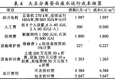 4.1大豆分離蛋白廢水處理工程總投資及構(gòu)成大豆分離蛋白廢水處理工程總投資及構(gòu)成見表3。