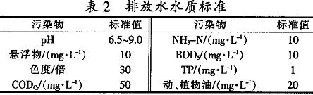 處理后出水水質(zhì)要求全部達(dá)到GB8978-1996《污水綜合排放標(biāo)準(zhǔn)》中一級(jí)排放標(biāo)準(zhǔn)及《雜用水水質(zhì)標(biāo)準(zhǔn)》,見(jiàn)表2。