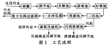經(jīng)過(guò)技術(shù)經(jīng)濟(jì)比較.本設(shè)計(jì)處理工藝流程如圖1所示。